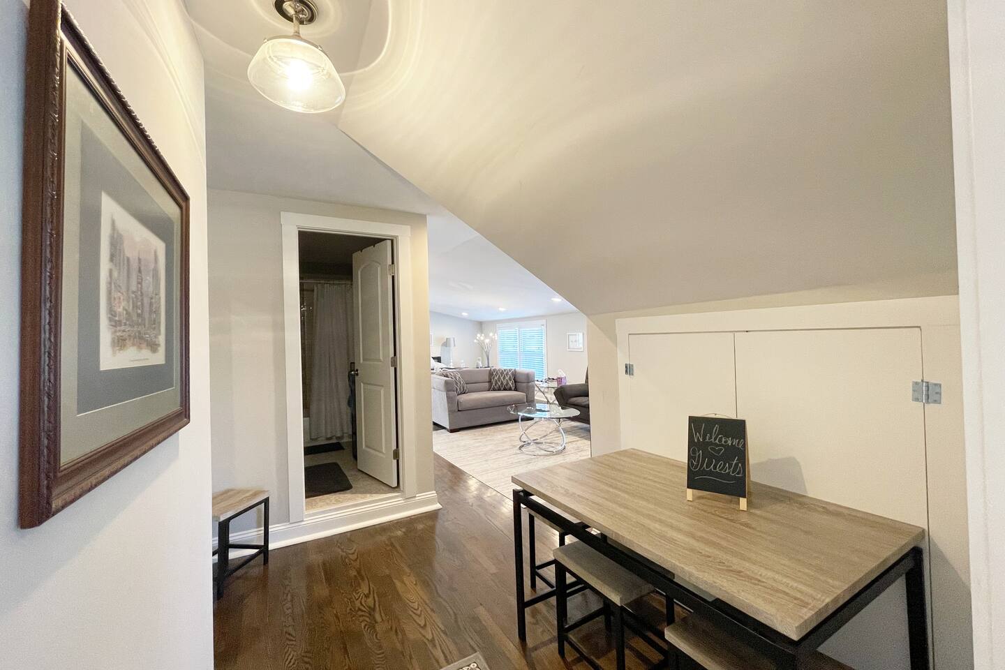 This is a second story apt so you will be climbing a very easy set of stairs that are located outside. We offer off-street parking for one vehicle, and there is free street parking as well. There are also tenants living in the downstairs apartment.